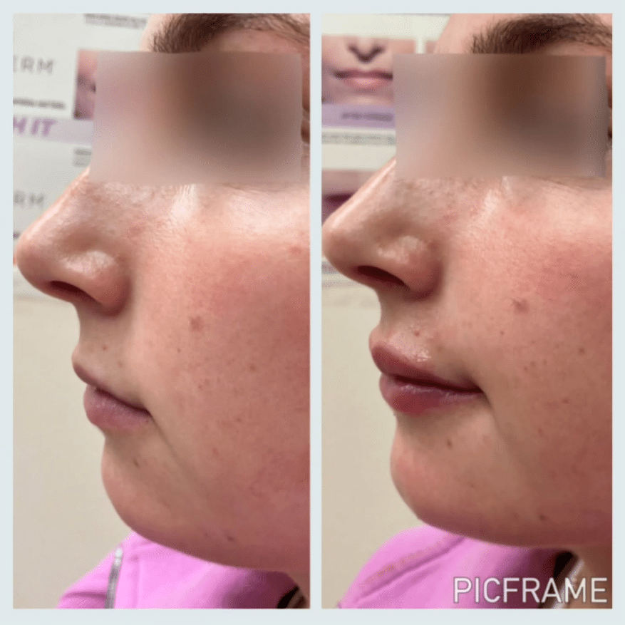 Experience the art of profile perfection! Our expert filler treatment has masterfully sculpted this nose, eliminating the dorsal hump while maintaining a completely natural look. The result? A beautifully balanced profile that enhances your natural features without looking 'done.'